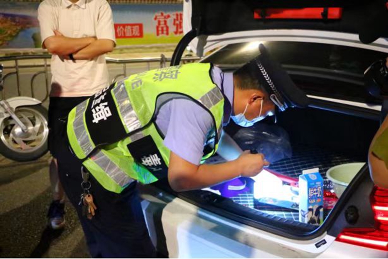在核实车辆驾乘人员的身份和车辆信息后,禁毒民警还对车辆内部和尾箱内的物品是否携带毒品和易制毒化学品等违禁物品进行检查。