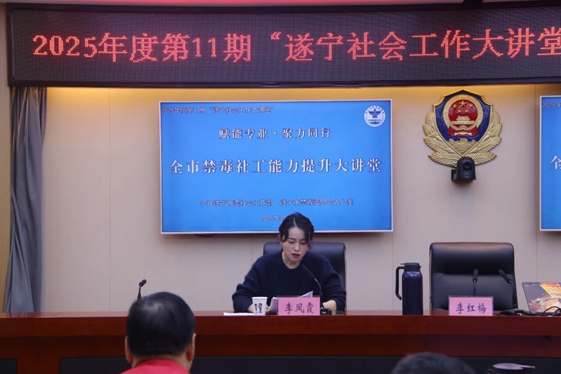 市禁毒办副主任、市公安局禁毒支队副支队长李凤霞在活动中强调,各地各有关部门要高度重视禁毒社会化工作,切实提高政治站位,强化责任担当;全市禁毒社工要以此次大讲堂学习交流为契机,聚焦专业提升,持续学习吸毒人员帮扶救助、资源链接、个案管理等核心技能,补齐能力短板;禁毒专业社会工作服务领域拓展试点单位要勇于探索,及时总结经验,努力形成一批可复制、可推广的“遂宁禁毒社工服务模式”。