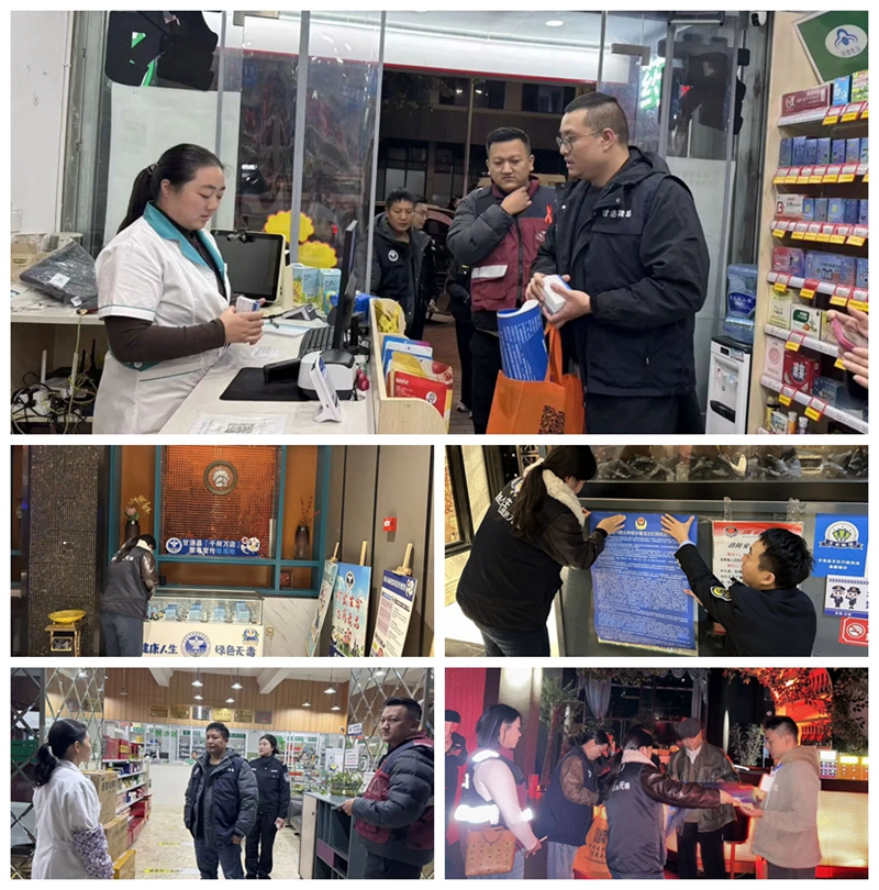 检查过程中,工作人员重点查看了娱乐场所内禁毒微基地建设情况,并在显著位置核查是否张贴了《凉山州群众举报涉毒违法犯罪奖励办法》。同时,对场所负责人是否定期组织从业人员开展禁毒培训、是否有涉毒人员从业、禁毒巡查制度是否健全完善、是否播放禁毒公益宣传片《你是自己的光》、LED显示屏是否滚动播放禁毒标语、药店售卖特定药品是否落实实名登记等内容进行了细致检查。针对检查中发现的问题,工作人员现场提出整改意见,并督促相关场所立即落实。此外,工作人员还向场所负责人、从业人员及顾客发放了禁毒宣传资料,详细讲解如何识别毒品、辨别吸毒行为等知识,进一步提升群众的禁毒意识和自我保护能力。