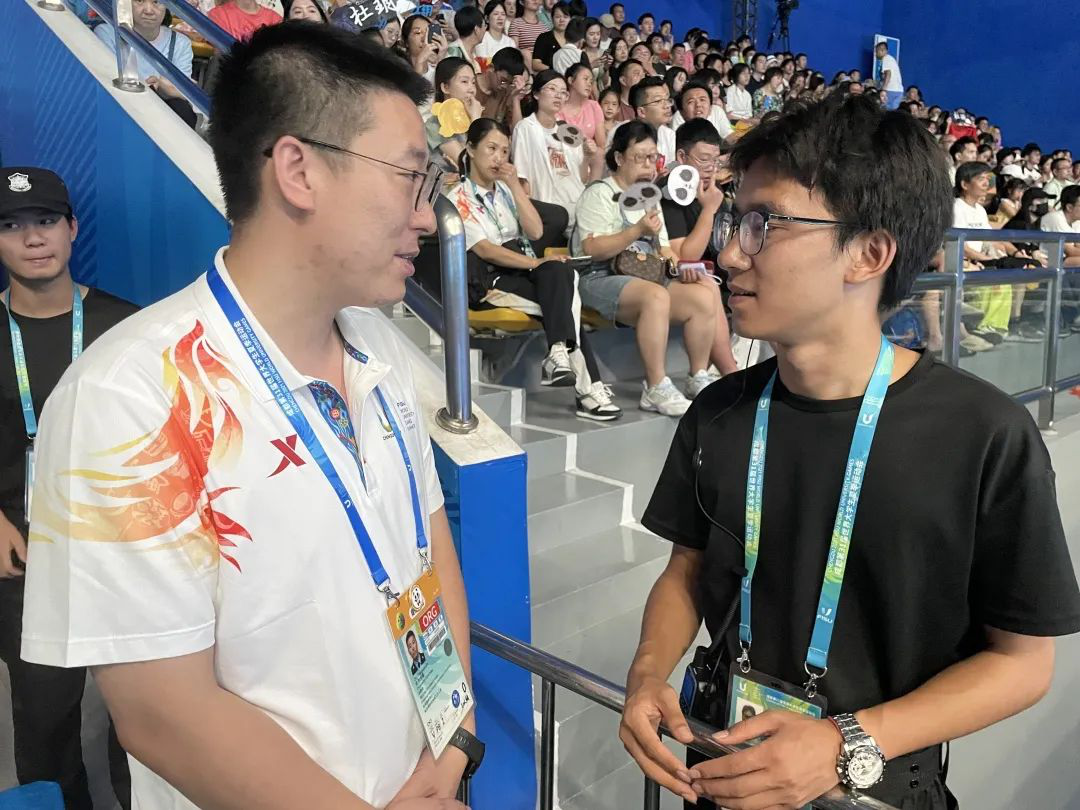 他,健步如飞,奔走在大运会各个场馆;他,伏案疾书,时常日旰忘餐,累计上报信息上千篇,挖掘记录近百个先进事迹,捕捉无数个精彩感人瞬间。他战酷暑、顶暴雨,每天奔波2万步,瘦瘦高高的帅小伙,脸上始终洋溢着坚毅和自信。