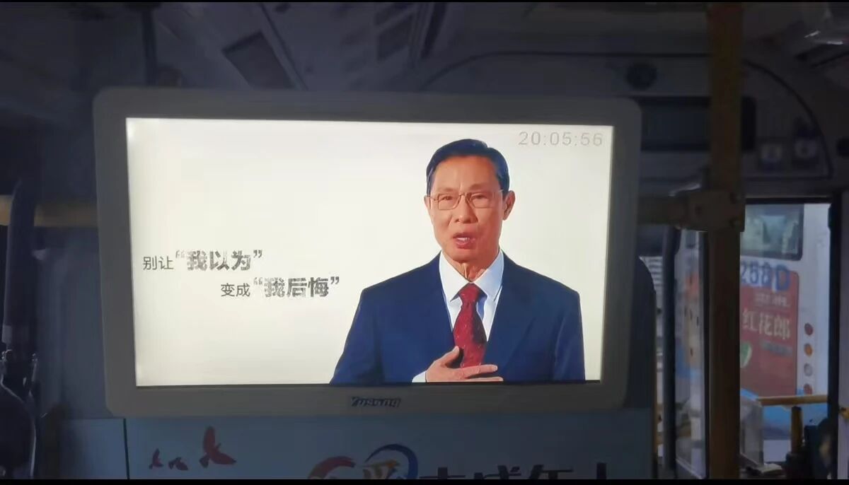 车载电视循环播放禁毒公益短片,短短一段车程,就能成为一次轻松、直观的禁毒知识学习体验,让防毒意识在群众心中扎根。