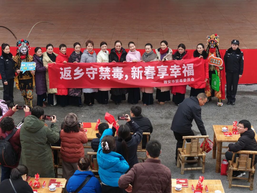 岁末年初,年味渐浓,务工人员陆续返乡,人员流动频繁,社交活动增多,成为毒品预防宣传的关键时期。为切实筑牢全民禁毒防线,守护群众生命健康,让“健康人生、绿色无毒”理念融入新春节日氛围,2月3日上午,雅安市禁毒委员会联合市委宣传部、市妇联、市司法局等多个成员单位,在草坝镇集中开展“平安返乡迎新春,禁毒护航过大年”主题禁毒宣传活动,将禁毒知识送到群众身边,为新春佳节保驾护航。